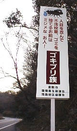 最近立てられた看板です。この看板が立てられてからは、さすがに、この周辺にはゴミはなくなりましたが、