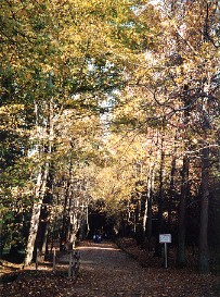 龍ノ口グリーンシャワー公園入り口のモミジバフウの並木 2000年11月26日撮影 この公園には、世界中から集めた色んな木が植えられている。新緑の頃も又、違った味わいが