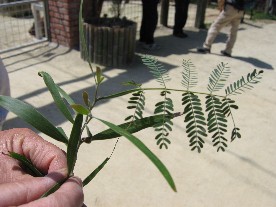 薄黄色の丸い形をしたこの花は何という木だろう。その木の葉っぱには、こんな変形したものも。