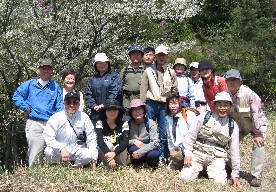 昼食後、満開の桜の花の下で記念写真を