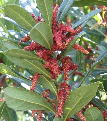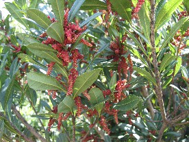 ヤマモモの花、真っ赤な蕾がきれいだ。