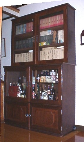 本格的な製作は本箱と洋酒棚をセットにした棚でした。(写真参照)この棚は図面を書いて作りました。2年がかりの
