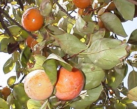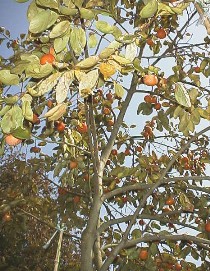 昨年(1998年)、明日香路を旅した際、いく先々で見た風景、実をたわわに付けた柿の木は山の
