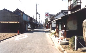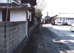 風呂屋に続く細い道、田圃であったところも埋め立てられている。 右は本陣(大名の宿泊した所) 私は風呂屋に通った道のほとりに立ってみた。ここは来る日も来る日も母と弟と一緒に風呂屋に通った道である。