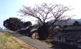 小さく見えるのが廉塾、手前が僕らがラジオ体操をしていた空き地。 茶山邸の敷地には大きな古い楠があり、その下は広場になっていた。僕らは夏休みになると、ここでラジオ体操を
