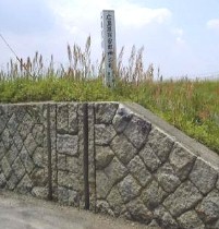 古市と平野の境にある水門跡の石垣、この周辺には関所もあったという話だが。 従って、高屋川の長い堤防は、ここでぷつんと切れている。その付け根のところに神辺の上水道の汲み上げ井戸がある。