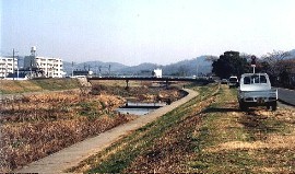 今の高屋側は黒くよどんだ流れのない川になっている。かつてのような面影はどこにもない。田圃の少なくなった現代