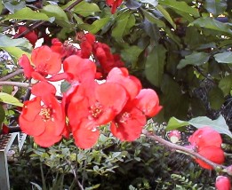 赤い花の咲く木です。ボケはその名の通り、あまり季節を選ばずに真夏を除けば、ほとんど一年中