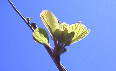 柔らかい産毛に包まれたキウイの新芽 1999年春キウイの原産地は中国の雲南省といわれています。実の形がニュージーランドに住んでいる