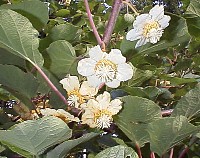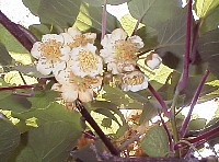 キウイの蕾、そして開花(左が雄花、右が雌花) 1999年5月撮影