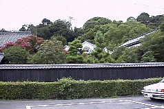 黒い築地塀の向こうに蔵が建ち並んでいる。