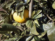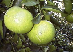 少しずつふくらみを増し色付き始めた八朔 1999年10月28日撮影 右は生口島が原産だと言われている安政柑