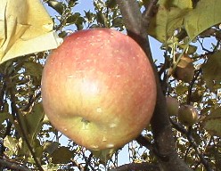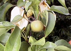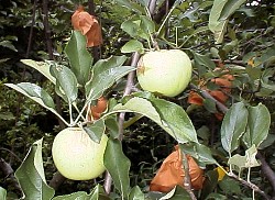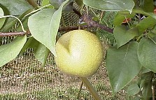 左がリンゴの津軽(リンゴの中では収穫が一番早い)、右はナシの新水(今年の出来は最高だった) 2003年8月