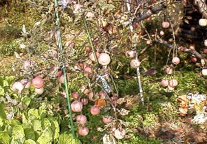 富士のたわわに実ったところ 袋をはずして色つきを良くしている。1999.11