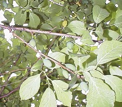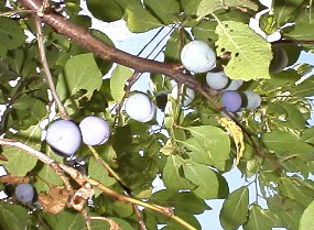 紫色に色付き始めたプルーン 2000年7月30日撮影 収穫直前のプルーン2000年9月12日撮影