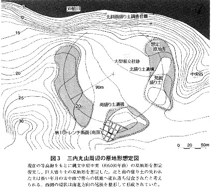 土器や石器などが埋まっている巨大盛り土等、多くの人の手を要したであろう土木工事が至るところに見られる。