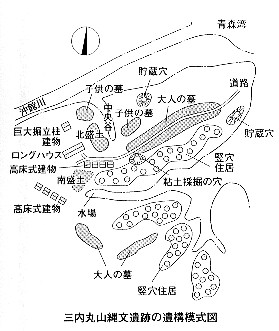 遺跡から発見されたものの中には、巨大な建造物(大型竪穴住居、大型掘立柱高床建物)や道路、おびただしい