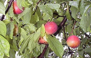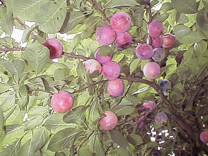 はや小さな実となり始めたすもも(1999年4月25日撮影)と色づき始める前 6月