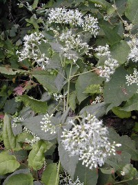 左の花は今の季節よく見かける花である。花が終わると紫色の実を付ける。花には特有の芳香がある 右は俗にヤマゴボウと言われている草の花だ。この花も後には赤紫の実を付ける ![]()