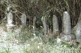 上野肥前守隆徳とその妻鶴姫、そして一族や鶴姫に付き従った侍女や郎党の慰霊碑 霊を慰めるため地元の人達によって後の世に立てられた 山頂から少し下ったところにもこのような石仏が祀られていた 私達はヤブ蚊の襲来を避ける意味もあって展望台で食事をとった。しかし、この程度の高さではヤブ蚊の襲撃