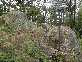 千人岩と千人岩から眺めた景色 千人岩は常山合戦時城方の退路遮断のため敵方が千人の兵を配したと言われている 山頂には大きなテレビ塔が二基立っている。周辺に電波を遮るようなものがない常山は、中継所としては絶好