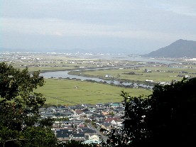 山頂にある展望台から遠く児島湖方面を撮影 かつて惣門丸という櫓があったところから眺めた景色 ![]()