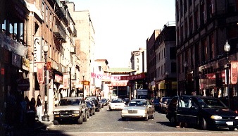 左はボストンの中心地、巨大なビルが林立している、右は中華街(ここだけは雰囲気が違う) 今日の昼食は飲茶とのこと。大きな店の中には客がいっぱいだった。人種は様々だ。