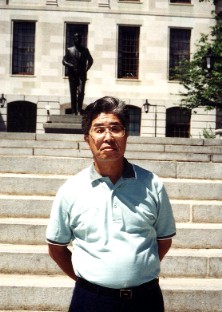 左はハーバード大学など有名校が多いハーバード、右はケネディの銅像の前で 晩は中華料理を食べ、一度ホテルへ帰る。帰り支度をして、シャワーを浴びローズマりーの家へ。