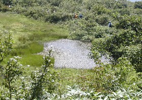 たたえた大きな池だったのかも知れません。池の周辺は湿地帯になっています。カエルも鳴いていました。湿地帯には
