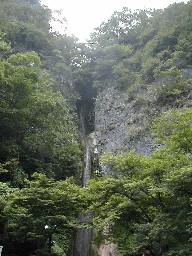 新見の休憩所の絹掛の滝、細い流れが絹糸のよう 国道180号線を北上し、高梁を抜け新見を通り県北の町神郷町から広島県の東城町に入りました。ここは昔の