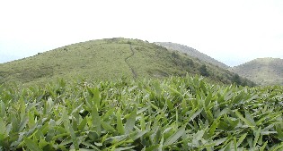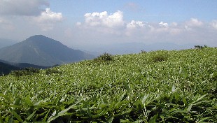 グループや家族連れの人達が来ていました。山頂当たりにはクマザサが絨毯を敷き詰めたようです。足下には