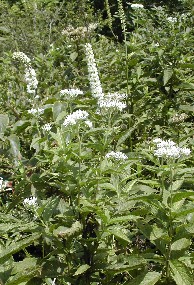 不明4(調査中)、ホッツツジ、手前ヨツバヒヨドリと細長いのがヌマトラノオ ![]()
