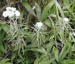 ホソバヤマハハコが可憐な白い花をつけ群生しています。道後山は山野草の宝庫と言っても良いのではないでしょうか。