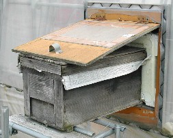 イチゴハウスの中、たわわに色付いたイチゴが見事だ。 イチゴハウスに取り付けられた蜜蜂の箱(イチゴの受粉に使われている) 西側には芝生の大きなグラウンドがある。ここでは色んなイベントも行われているが、それ以外の時には