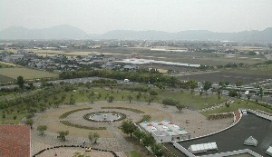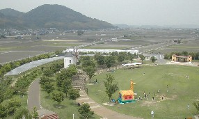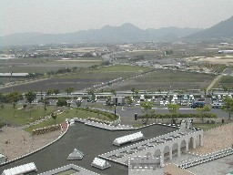 中央に聳える高い塔の最上階からは場内はもちろんの事、周辺の広大な田畑を一望する事が出来る。