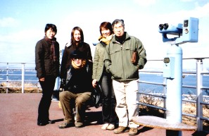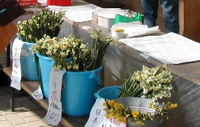山頂にほど近いところから見下ろした景色 売店の前では水仙が束にして売られています 淡路から帰りには北淡町にある震災記念公園に行きました。ここには巨大な風車が回っていました。最大出力
