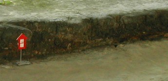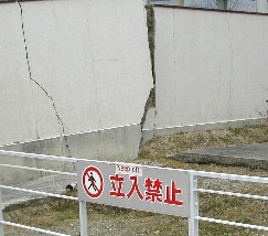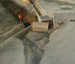大きな断層が走っています。側溝も折れ曲がっています。 ![]()
