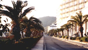 白砂青松と言うにふさわしい海岸の景色です 洲本市は古い町のようです。地図を見ますと関西空港にも船が出ています。明石海峡大橋が開通するまでは