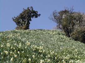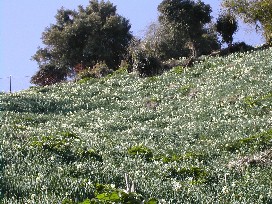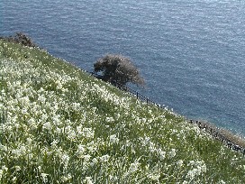海辺にありました。一方を海に面した急斜面から、谷間となっている一方の山肌にかけて、一面の水仙が咲き乱れて
