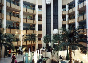 作られていた。私達は中央の建家の両サイドにあるエレベータ脇の部屋であった。中央の部屋が大きく両サイドに