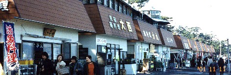 ずらりと並んでいた。これらの店先には水槽が置いてあり、生きた魚が客を待っていた。食堂街の先には、これから