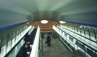 長い階段を上りきるとMOA美術館の大きな建物がある、美術館に至る長い長い階段、幻想的な照明が印象的だ ![]()