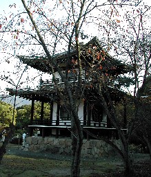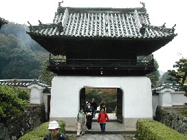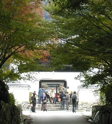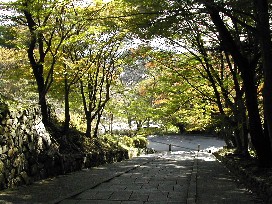琴坂の一段高いところに建っていた石塔、そして竜宮城を思わせるような山門、琴坂は紅葉には今少しと言ったモミジに覆われていた。 ![]()