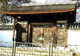 仁王様が両脇に立つ大きな山門の手前には菊と桐の模様が刻まれた門がある。 そして広い参道を歩いていくと醍醐寺の入口である山門に至る。 ![]()