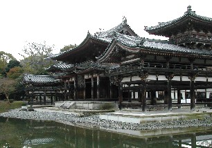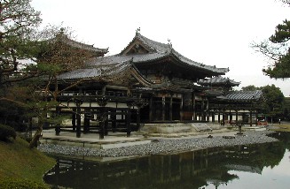 鳳凰堂はどの角度から写しても絵になる。それだけ均整がとれた建物だと言うことではないだろうか。 手前にある池に建物の影を落として静かに建っている。 ![]()