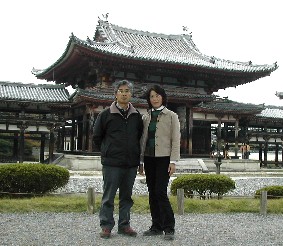 左は鳳凰堂を裏側から見たところ、鳳凰堂を背景に記念写真。 興聖寺