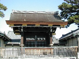 左はムクの木、黒く熟れた実がついている。右は御所の幾つかある門の一つ建礼門 ![]()