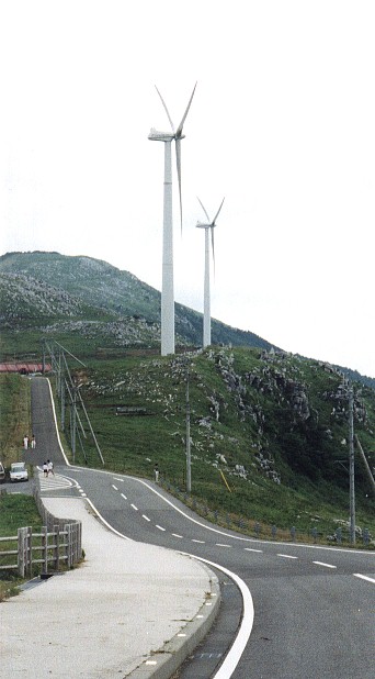 二台並んで立っていた。一台の発電電力は500kwと言う表示が制御板に書かれていた。