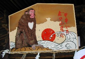 門前町を抜けると大門が見えてくる。今年の干支である申の絵馬が飾られていた。 ![]()