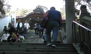は珍しく、何枚か写真を写して引き返した。私達と入れ違いに次々と参拝客が登ってきて、途切れることは